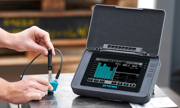 Equotip 550 Leeb hardhetsmåler benytter endring av energi som prinsipp for portabel hardhetsmåling. Instrumentet måler innskytingshastigheten av prøvesonde og hastigheten på sonden når den returnerer tilbake. Hastighetsendringen gjenspeiler endring i energi som en funksjon av hardheten.
